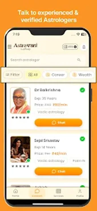 Appen inkluderar olika astrologiska tjänster som vedisk astrologi, tarotkortläsningar och palmavläsning. Användare kan välja att chatta eller ringa med astrologer för att få skräddarsydd vägledning och lösningar. Med en användarvänlig design och ett brett utbud av ämnen att utforska, erbjuder AstroVani ett unikt sätt att koppla samman traditionell astrologi med modern teknik.